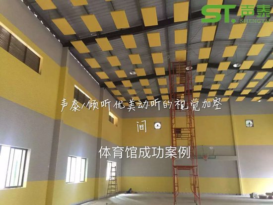 廣州黃埔體育館共采用‘聲泰’木飾面防火槽孔吸音板1200平方米。天花懸掛空間吸聲體700平方木。以下是我司業(yè)務(wù)經(jīng)理現(xiàn)場所拍攝的裝修效果圖!