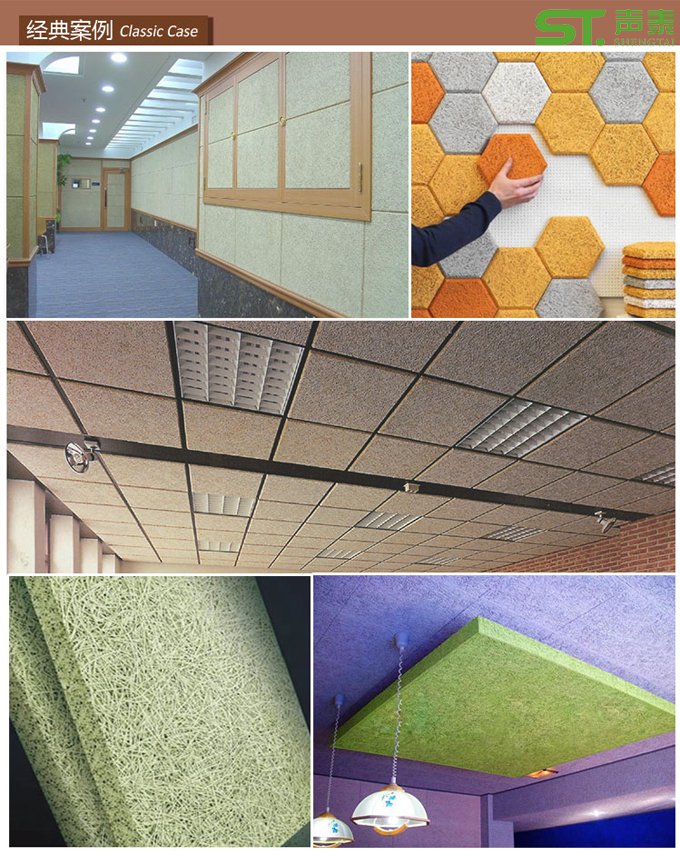 2、卓越的聲學(xué)性能:利用聲波通過(guò)材料內(nèi)部的大量小孔,把聲音的能量轉(zhuǎn)化為動(dòng)能,從而起到吸聲的作用。按照正確的施工方法可以達(dá)到NRC0.95的吸音效果