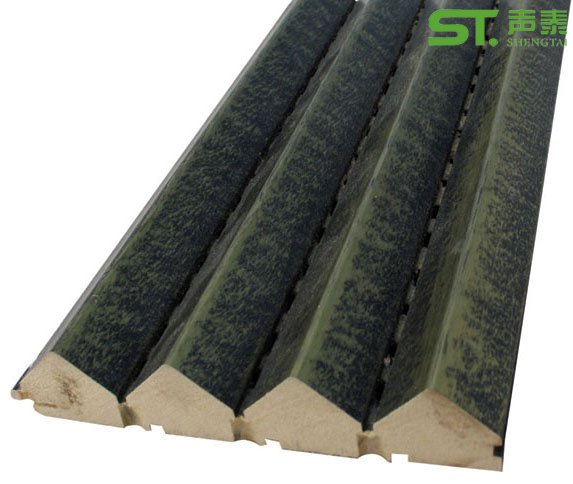 擴散體吸音板是根據聲學原理精致加工而成,在高密度纖維板正面開立體三角墻,背面開圓孔的結構吸聲材料,飾面噴漆,背貼防火吸音布。材質及顏色根據客戶需要,有櫻桃木、沙比利、楓木、黑(紅)胡桃、紅白影、紅白櫸、麥哥利、泰柚等等,品種有開槽多孔型、D小眼孔型,組合型等多種樣式可供選擇。