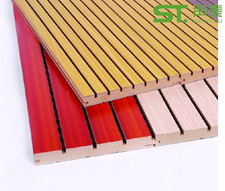 槽木吸音板和其他木質吸音板和多孔材料的吸聲特性類似;吸聲系數隨頻率的提高而增加,高頻的吸聲系數很大,其后背留空腔以及用它構成的空間吸聲體可大大提高吸音材料的吸聲性能。成為寬頻帶的高效吸聲體。木質穿孔吸音板所組成的吸聲體除了吸聲系數高,吸聲頻率寬即優異的聲學性能之外,還具有良好的物理力學性能及室內的裝飾性能,該產品經北京清華大學聲學研究會所測試,不但能降低噪音;而且能使混響時間達到國家聲學設計標準,使音質更加豐滿、清晰、富有立體感。還具有很強的裝飾效果,槽木吸音板既有天然木質紋理,古樸自然;也有體現現代節奏的明快亮 麗的風格,產品的裝飾性極佳,可根據需要飾以天然木紋、圖案等多種裝飾效果,提供良好的視覺享受。