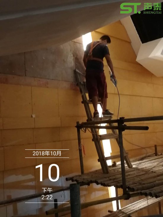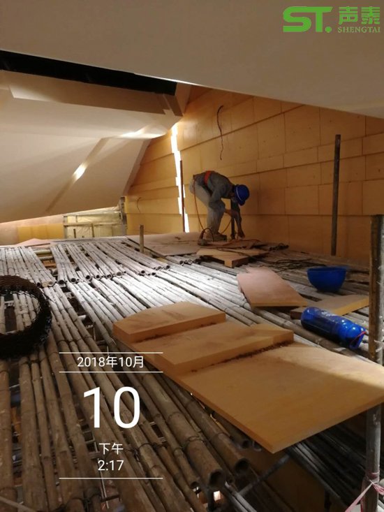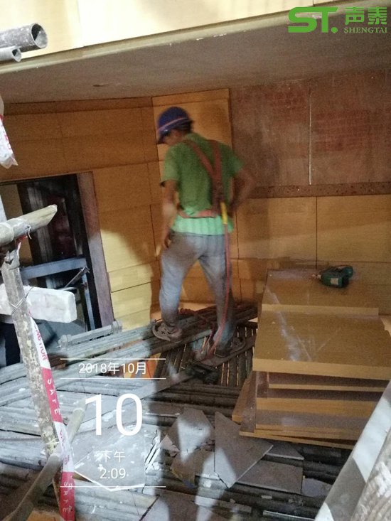 聲泰【工程部】施工團隊演藝中心mls木質擴散體安裝施工現場