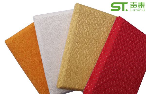 布藝軟包吸音板是經(jīng)過塑膠邊框、樹脂固化邊框、鋁合金邊框或木質(zhì)邊框內(nèi)放置不燃的經(jīng)微孔化處理的特制吸音棉板,外包防火吸音布特制而成具有時尚外觀和高吸聲性能的軟包吸音板。布藝吸音軟包采用進(jìn)口國際品牌歐文斯科寧經(jīng)微孔化處理的特制不燃高密度玻纖棉為基材。