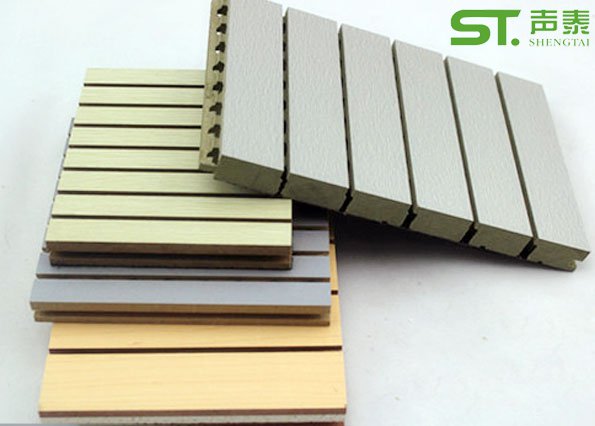 槽孔吸聲板也叫槽木吸音板,是屬于木質(zhì)吸音板的一種。木質(zhì)槽孔吸音板具有木質(zhì)環(huán)保和自然紋理的裝飾效果。槽孔吸音板是經(jīng)多名專家經(jīng)過多年的研制、開發(fā)成功的先進(jìn)的吸聲板,該吸聲板不但具有高性能的吸聲效果,而且具有突出的裝飾效果的綜合效果,采用中密度纖維板和三聚氰胺、真木皮、噴漆等飾面經(jīng)多道工序精致而成,吸聲結(jié)構(gòu)原理:—種在中密度纖維板的正面開槽、背面開圓孔的結(jié)構(gòu)吸聲材料,通過調(diào)整材料正面開槽背面開孔的結(jié)構(gòu)和改變槽寬或圓孔的深度及吸聲板背后空腔的深度與容積,在不同頻率上獲得不同的吸聲效果。常用于墻面和天花裝飾。