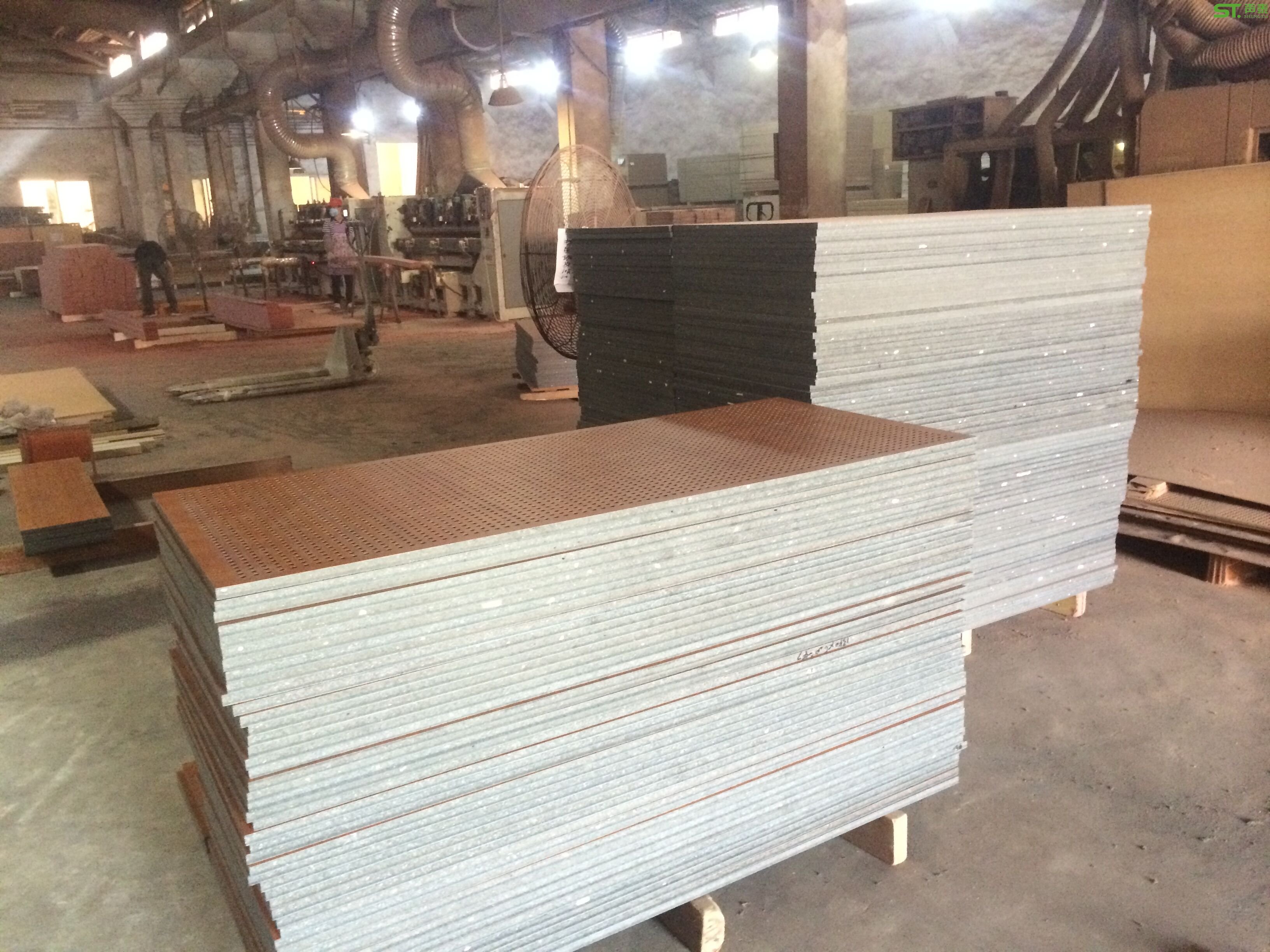 佛山聲泰作為專業(yè)的吸音板生產(chǎn)廠商,尤其對劇場吸音板有著豐富的經(jīng)驗!很多劇院的項目經(jīng)理、采購經(jīng)理都會問像這類場所用什么吸音板好呢?那種吸音板防火等級高,并且裝飾效果強呢?現(xiàn)在由聲泰小編為各位解答這個問題吧。劇場吸音板一般分為:槽木吸音板,孔木吸音板這兩種。以下是我司最近承接的南昌萬達劇場A級防火吸音板現(xiàn)場生產(chǎn)進度圖及工地現(xiàn)場施工圖,供各位參考!