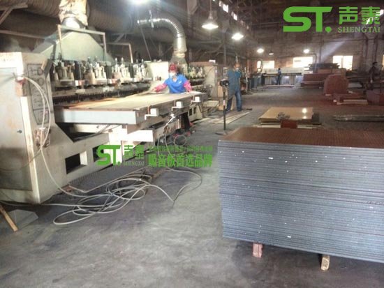 佛山聲泰聲學裝飾材料廠一家專業吸音板生產制造商,下屬多個生產車間,生產經營的產品包括木質吸音板、(槽木吸音板,孔木吸音板等穿孔吸音板)木絲吸音板、聚酯纖維吸音板、布藝軟包吸音板、空間吸聲體、隔音板、隔音氈、隔音減震墊、活動隔斷及產品零配件等產品。