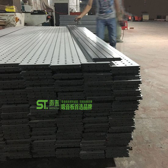 木質品生產車間正在緊急趕貨云南某劇場a級防火陶鋁吸音裝飾板(圖一)