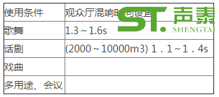 上列混響時間及其頻率特性,適用于600~1600座觀眾廳。
