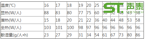 八、劇場內觀眾廳每人散熱和散濕量可按《空氣調節室設計參數》表選用。演員和舞臺工作人員的散熱、散濕量可按中等勞動強度考慮。