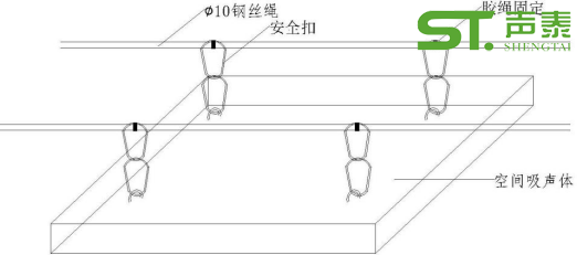 (3) 空間吸聲體通過吊環與鋼絲繩直接掛在安全扣上。