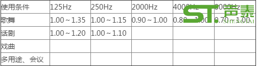 2、混響時間頻率特性,相對于500~1000HZ的比值宜符合下表規(guī)定: