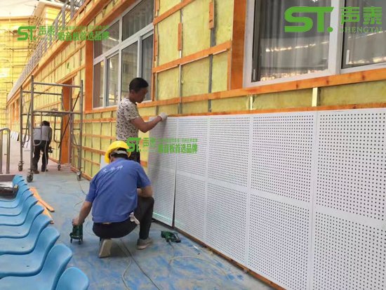 貴州遵義活動中心無機通孔吸聲板現場安裝圖