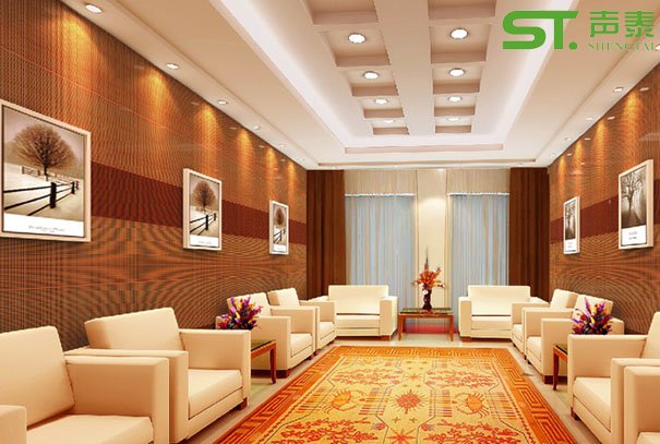 置一些吸音涂料,吸音的面積要有1-1.5m寬,2m左右的高度。吸音質料可用厚絨布打皺像窗簾一樣平常天然吊在側墻,也可用棉布包裹音棉,做成一塊塊的吸音體固定在墻壁上,或吊掛羊毛毯畫。