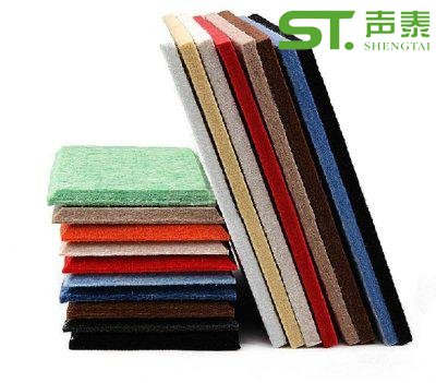防火阻燃聚酯纖維吸音板有30多種顏色,可以拼成各種圖案。表面形狀有平面、方塊(馬賽克狀)、寬條、細(xì)條。板材可彎成曲面形狀。可使室內(nèi)體形設(shè)計(jì)更加靈活多變,富有效果。甚至可以將藝術(shù)畫通過電腦復(fù)印在聚酯纖維吸音板上。