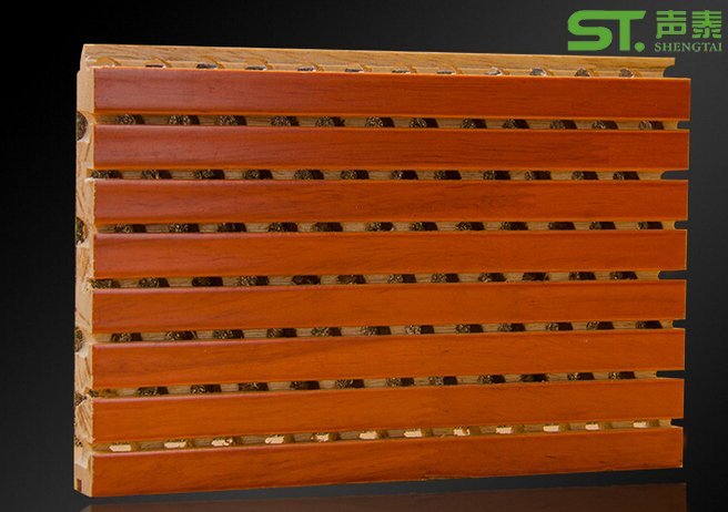 木皮槽孔吸音板是一種在密度板正面開槽,背面穿孔的狹縫共振吸聲材料。槽木吸音板對吸聲頻譜選擇性很強,對中低頻有很好的吸聲性能。如在吸聲結構后