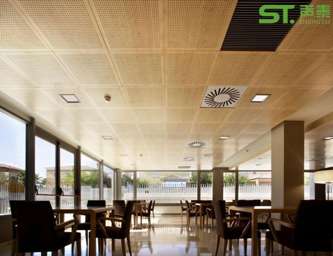聲泰聲學復合木皮油漆孔木吸音板選用優質的中纖板、具有環保、防火、防水等功能,飾面色彩及 材料選擇性廣,能極好地滿意客戶多樣化的聲學及裝修需要。較槽木吸音板,孔木吸音板相對立撞擊能力強。