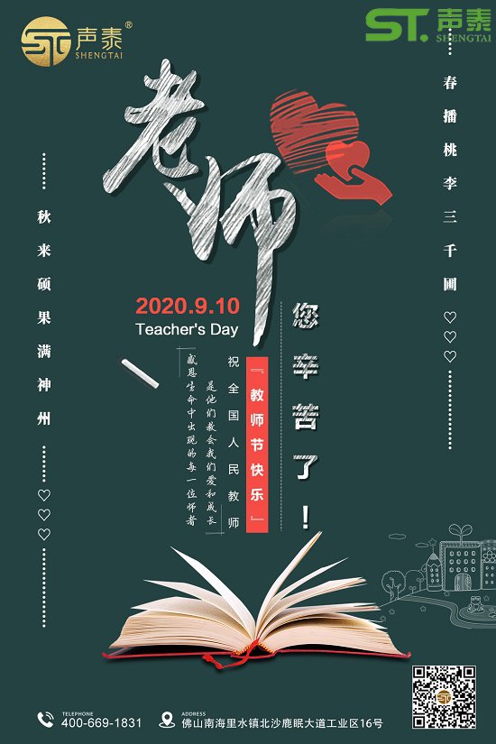 感恩人生道路上的每一位導(dǎo)師,國內(nèi)大型品牌吸音板|隔音板|擴散體|聲學(xué)材料廠家《廣東聲泰聲學(xué)科技有限公司》祝您們節(jié)日快樂。