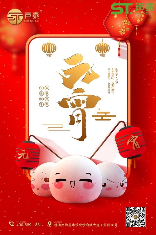 廣東聲泰聲學科技有限公司全體工作人員恭祝新老客戶,全國人民元宵佳節快樂,事事順心,紅紅火火,生意興隆,步步高升。